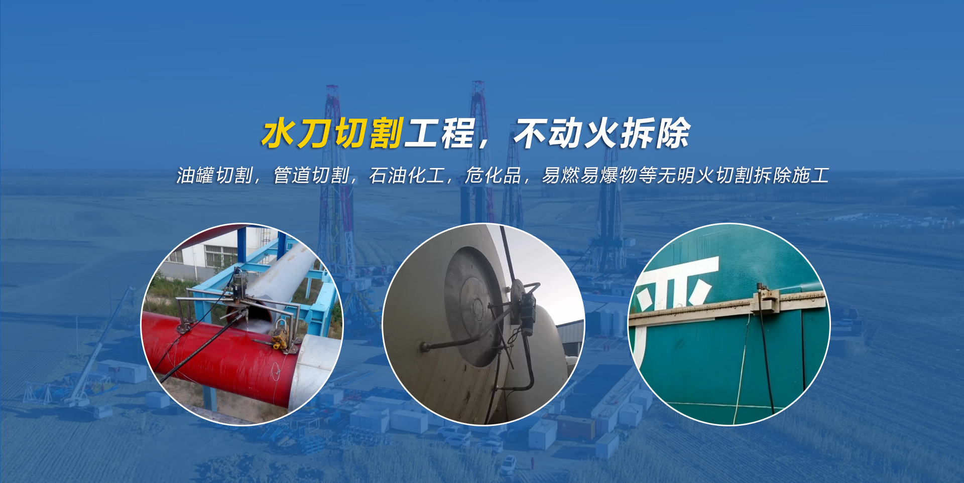 水切設備施工中無火花,無溫度變化,無靜電,免置換吹掃。以水為刀,切除一切安全隱患!承接礦業,化工,石油,燃氣等各種危險品,易燃易爆品的切割,廢舊罐體及管道的拆除,打孔,除銹,混凝土切割等作業。精準的施工隊伍切割工程遍布全國各地。